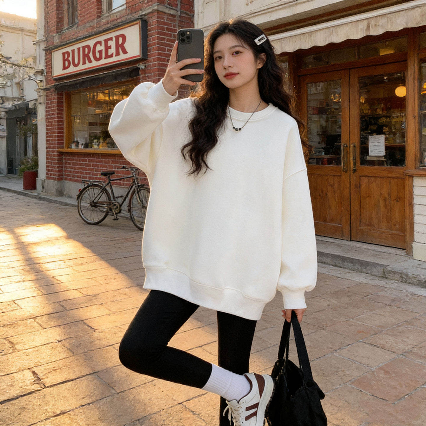 - 纯白色长袖卫衣女