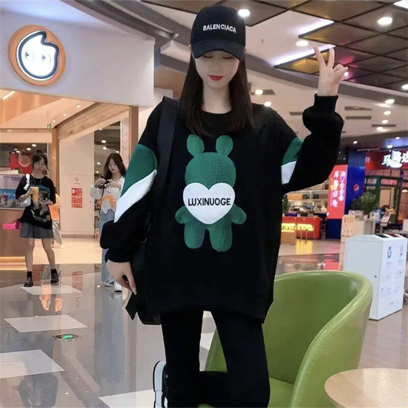 清货卫衣女中长款2023春秋新款宽松印花韩版学生套头卡通卫衣裙潮