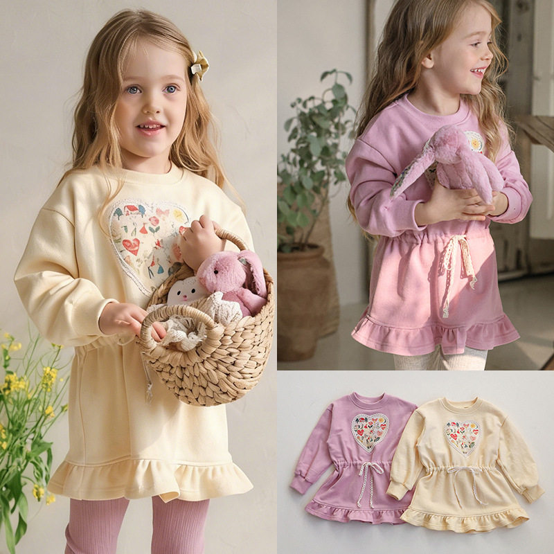 女童26春秋季新品长袖中长款套头外套儿童女孩洋气百搭休闲卫衣裙