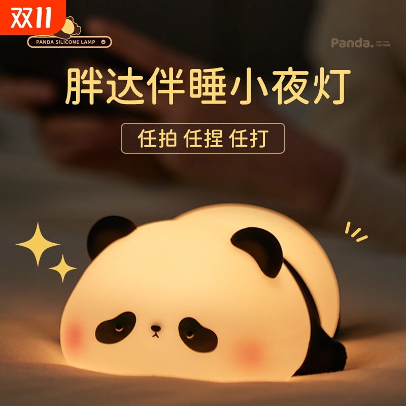 熊猫胖达硅胶灯小夜灯护眼拍拍灯卧室台灯儿童柔光护眼玩具女礼物