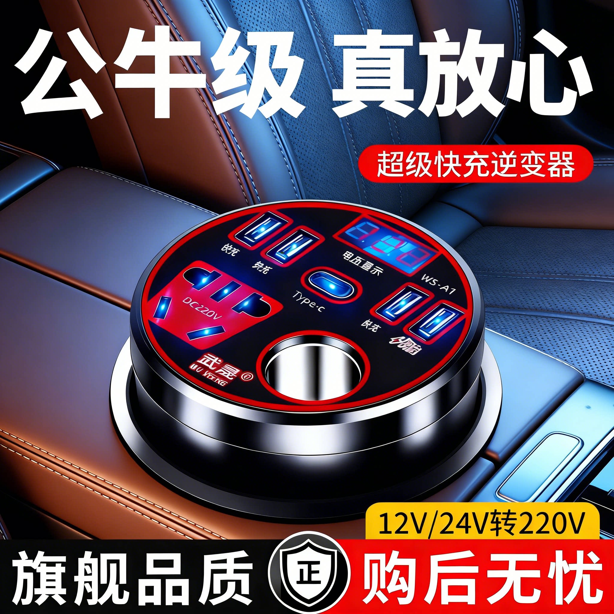 武晟车载充电器12V24V转220超级快充逆变器点烟器转换头扩展车充