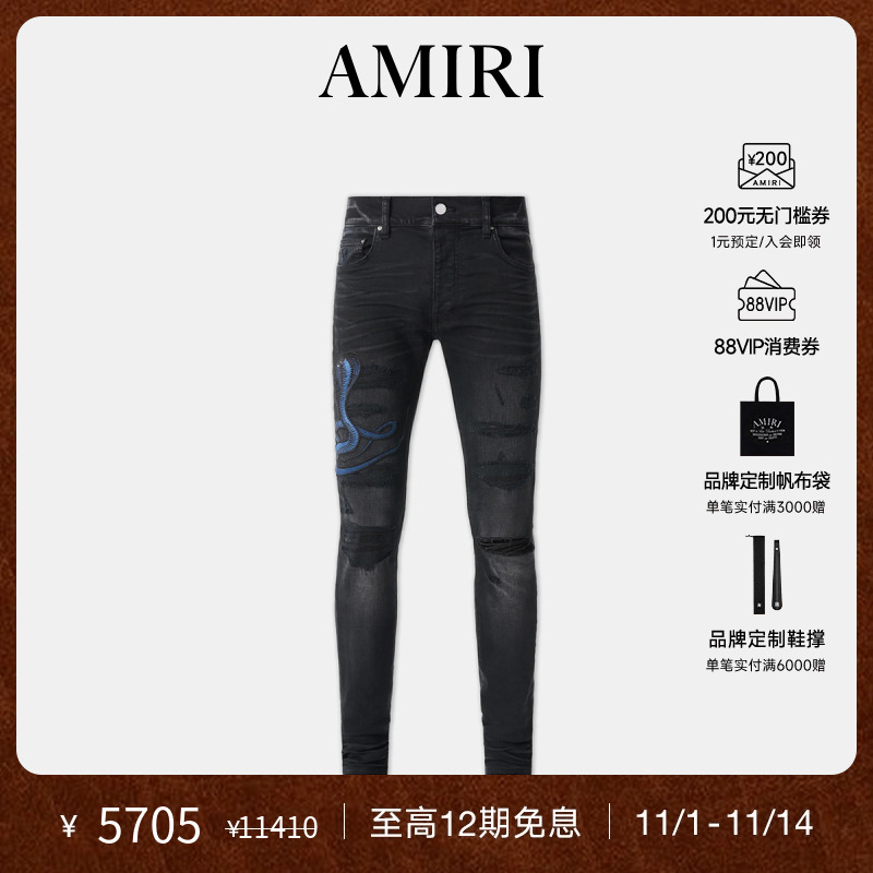 【年终盛典】AMIRI 2025年早春新品男装 个性撞色破洞紧身牛仔裤