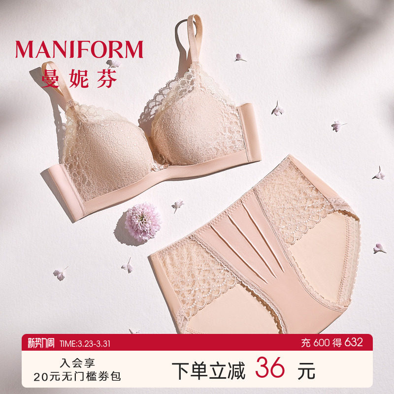 曼妮芬蜻蜓Bra芒果杯无钢圈文胸舒适无痕内衣女聚拢胸罩奶油蕾丝