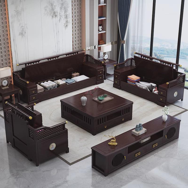 新中式实木沙发橡木全实木客厅组合冬夏两用大小户型储物木质家具