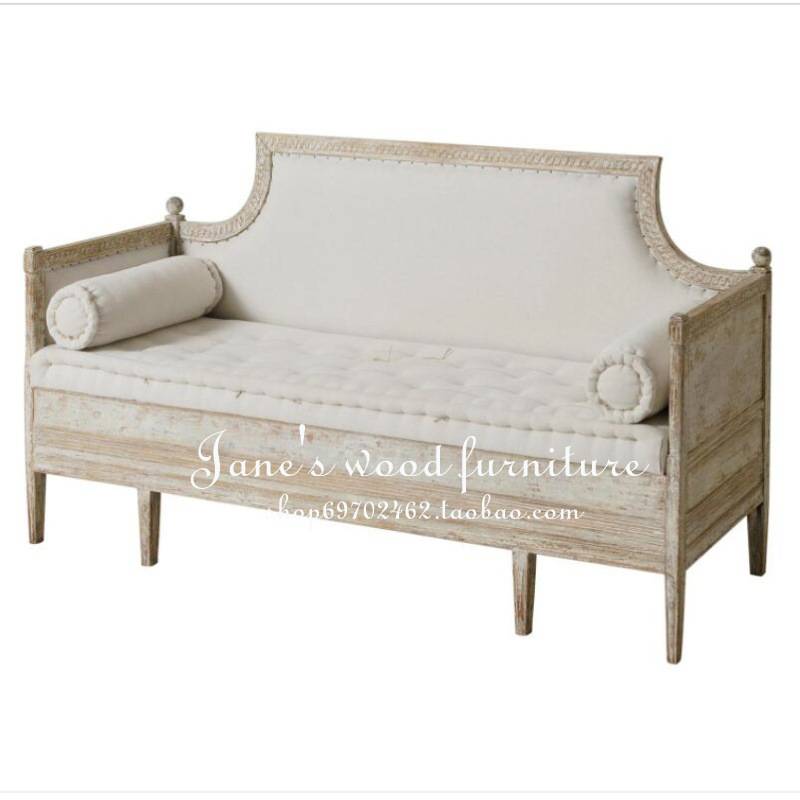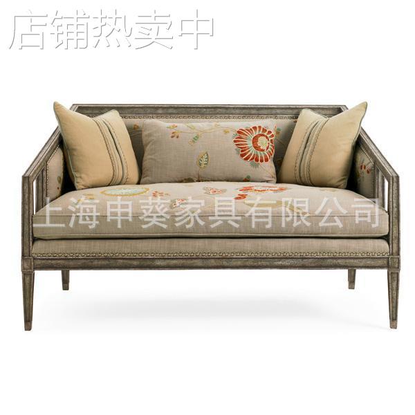 出口中式实木沙发橡木美式法式复古风化做旧木布结合双人三人沙发
