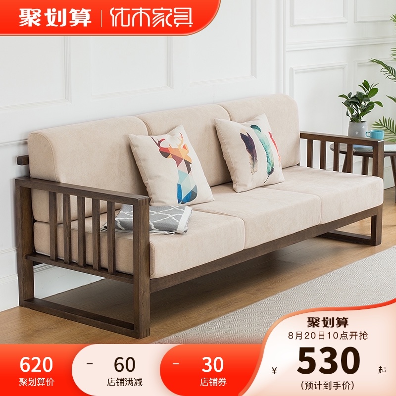 布艺沙发橡木单双现代组合风格小户型三人全家具简约北欧客厅实木