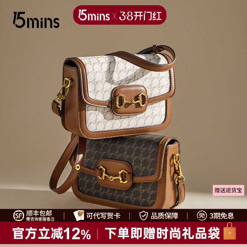 15mins包包女式2025新款小方包女斜挎包高级感老花女包礼物单肩包