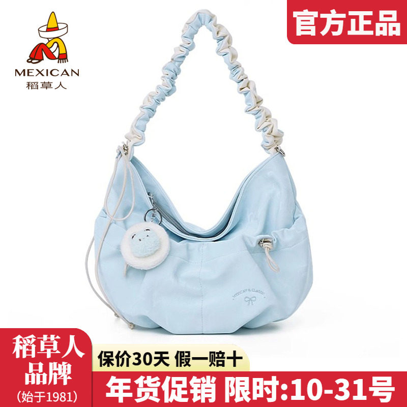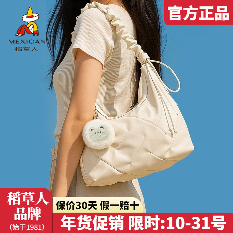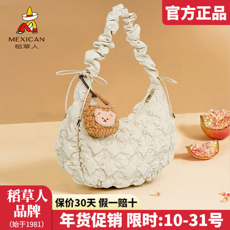 稻草人女包2025新款时尚单肩包褶皱云朵包女饺子包百搭斜挎包正品