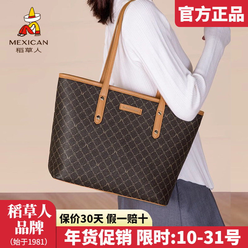 稻草人女包2025新款包包品牌正品通勤大容量托特包女士老花单肩包