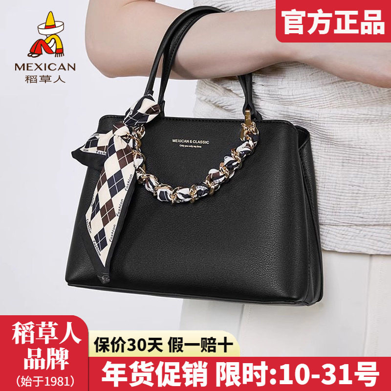 稻草人官方正品女包2025新款丝巾手提包大容量女士妈妈包包斜挎包