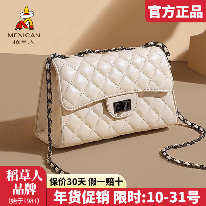 稻草人包包女包2025新款潮时尚流行百搭菱格斜挎包女士链条单肩包