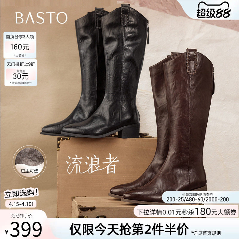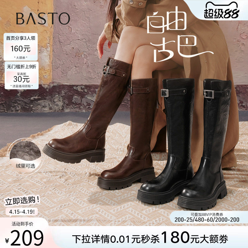 【关晓彤同款】百思图流浪者冬商场新款加绒大筒围V口骑士长靴女