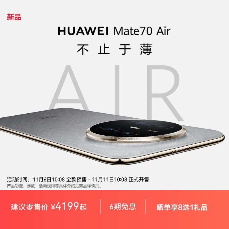 【新品上市 6期免息】Huawei/华为 Mate 70 Air 手机官方旗舰店官网正品超薄长续航7英寸鸿蒙手机