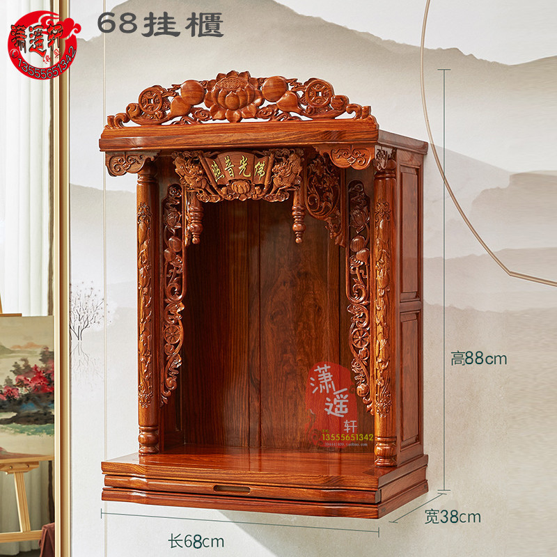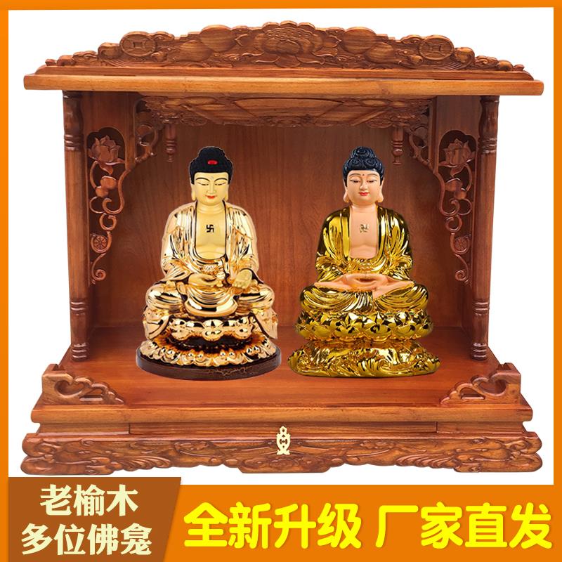实木双位佛龛家用供台菩萨香案财神爷柜子佛堂柜摆放柜神龛壁挂式