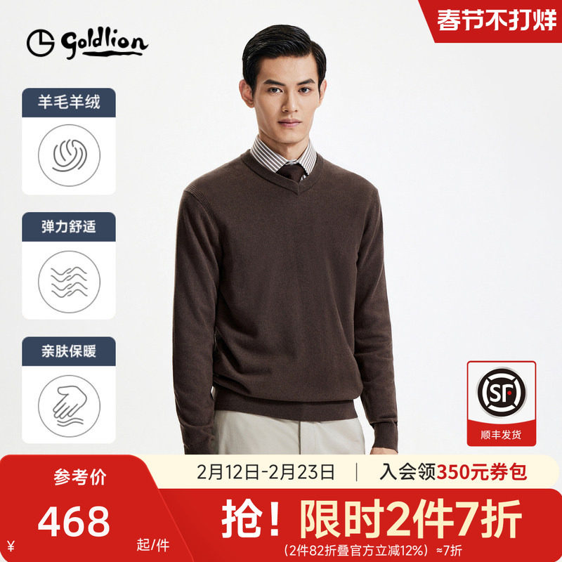 【V领羊绒毛衣】金利来秋冬保暖纯色羊毛衫套头内搭长袖针织衫男