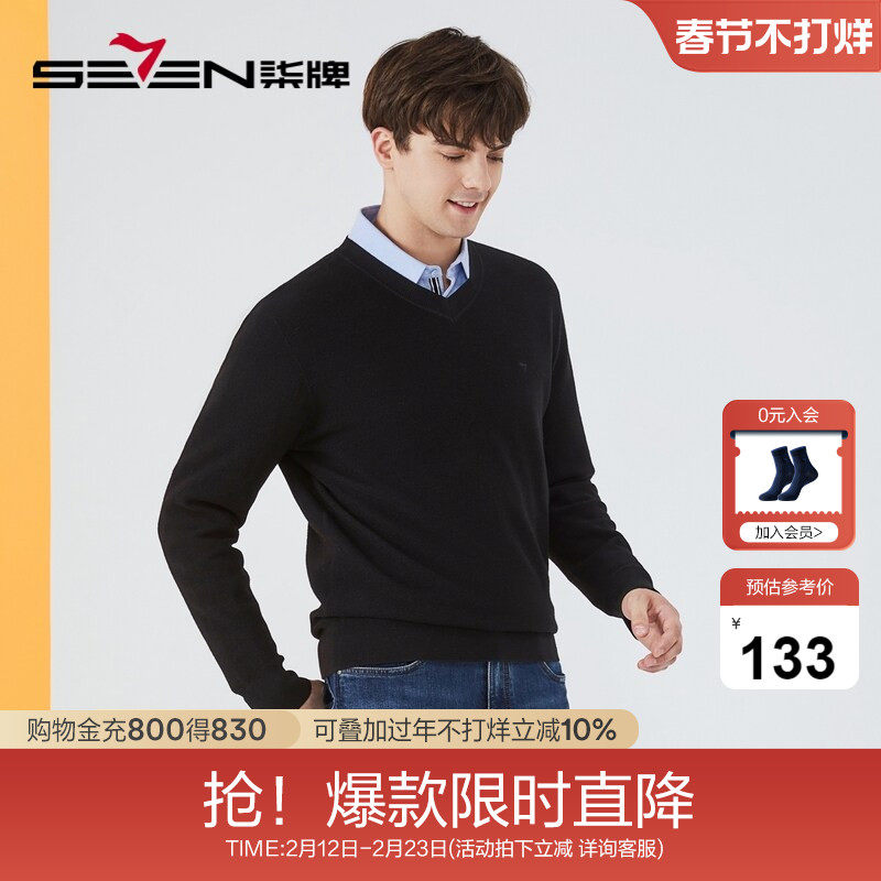 【纯羊毛】柒牌毛衣男2025秋冬装新款时尚休闲V领保暖上衣羊毛衫