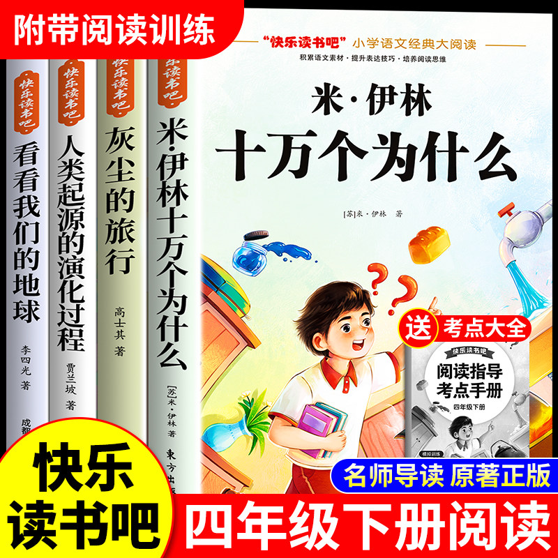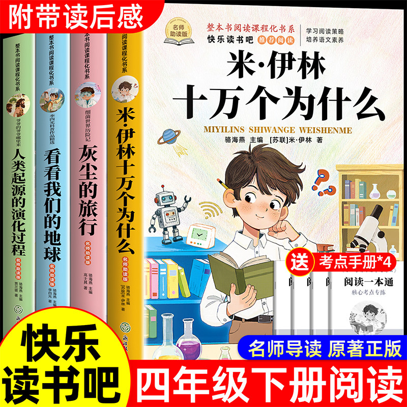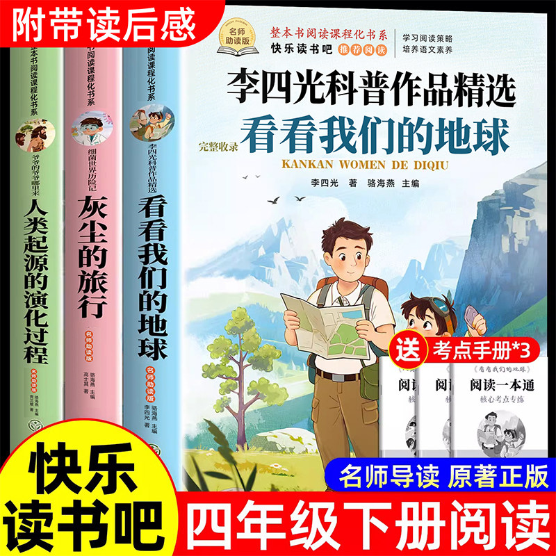 【2026新版】学而思快乐读书吧四年级下册看看我们的地球十万个为什么灰尘的旅行人类的起源四大名著三国演义一二三五六年级上册