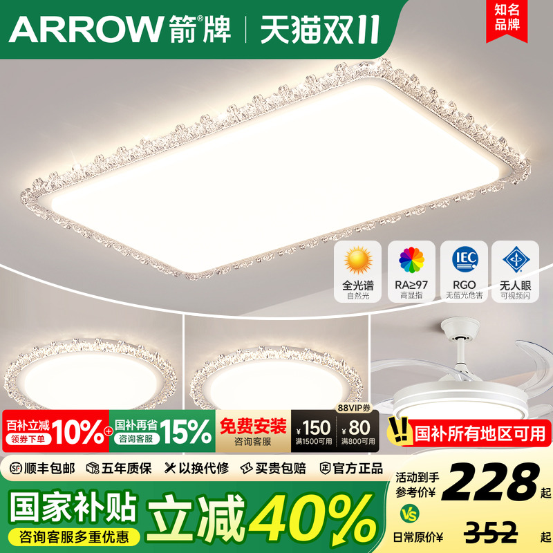 箭牌水晶客厅吸顶灯轻奢主灯全屋组合灯具套餐现代大气简约大厅灯