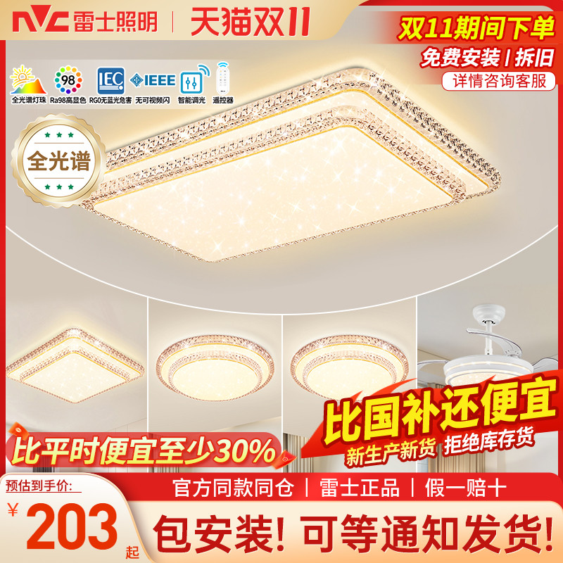 智能客厅灯2025新款简约现代大气LED吸顶灯水晶卧室灯具全屋套餐