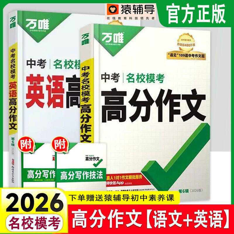 2026万唯中考满分作文语文英语2025人教版真题高分范文精选初中生七八九年级优秀作文素材示范大全初三写作技巧万维必背官方旗舰店