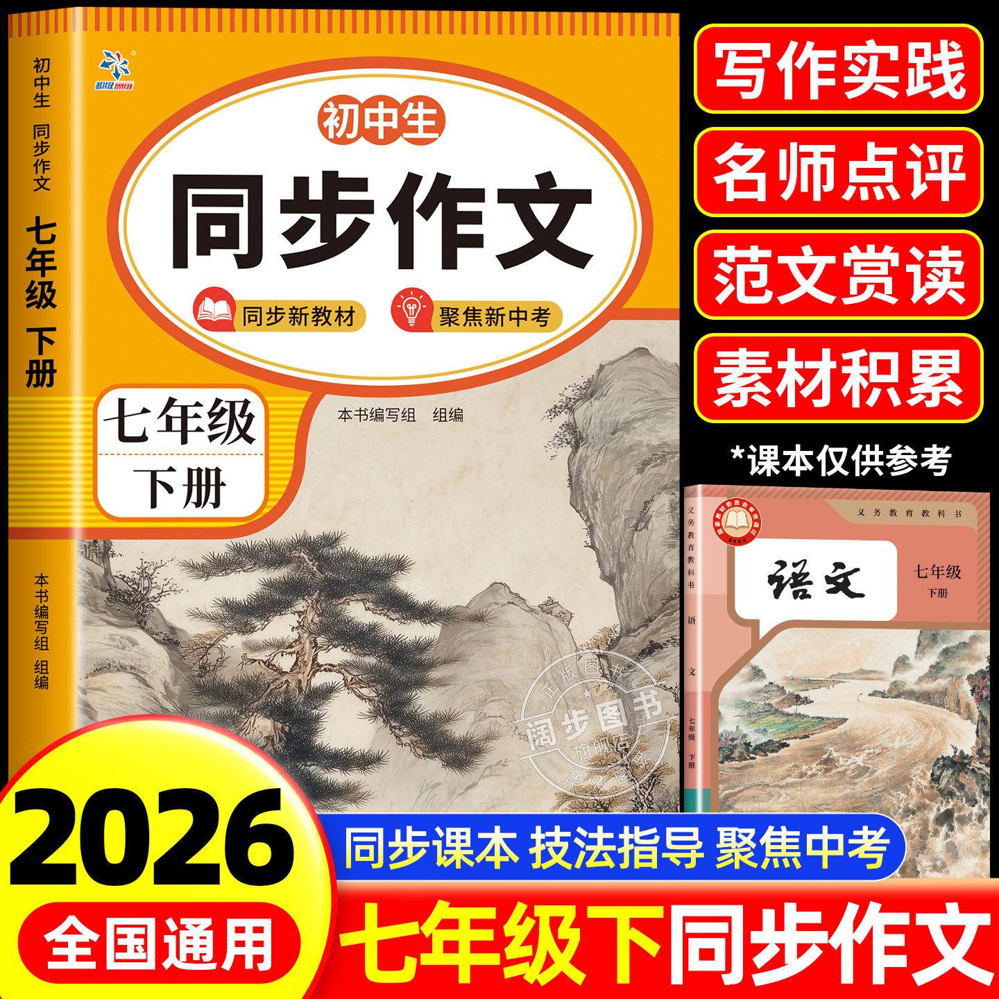 2026新版 七年级下册同步作文大全人教版初中生初一优秀高分范文模板精选中考满分作文素材积累7年级下学期作文训练辅导大全一本通