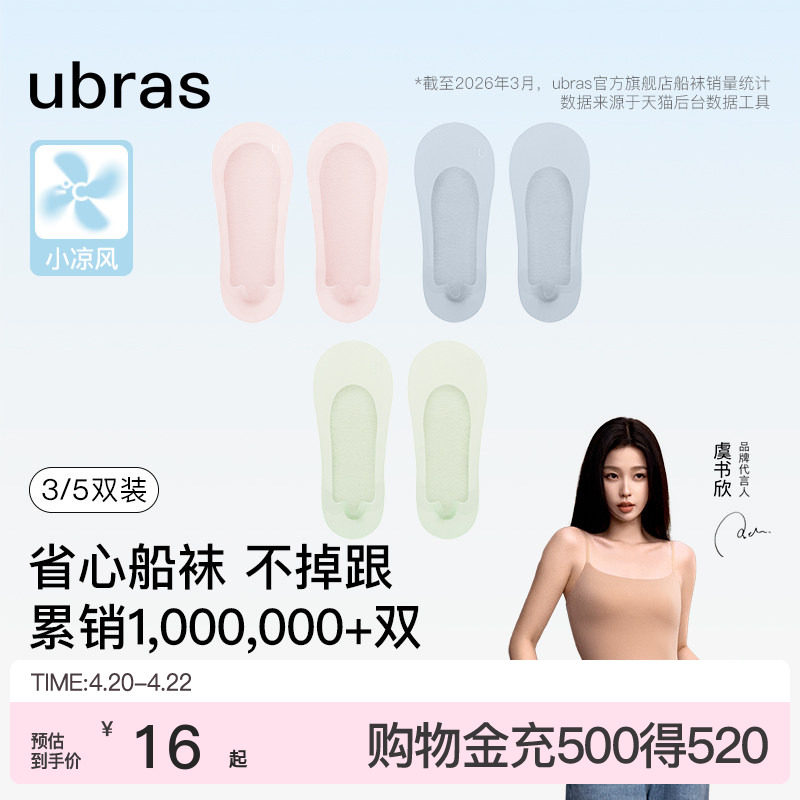 虞书欣同款ubras小凉风隐形船袜女浅口高跟鞋袜子防滑防臭春夏款