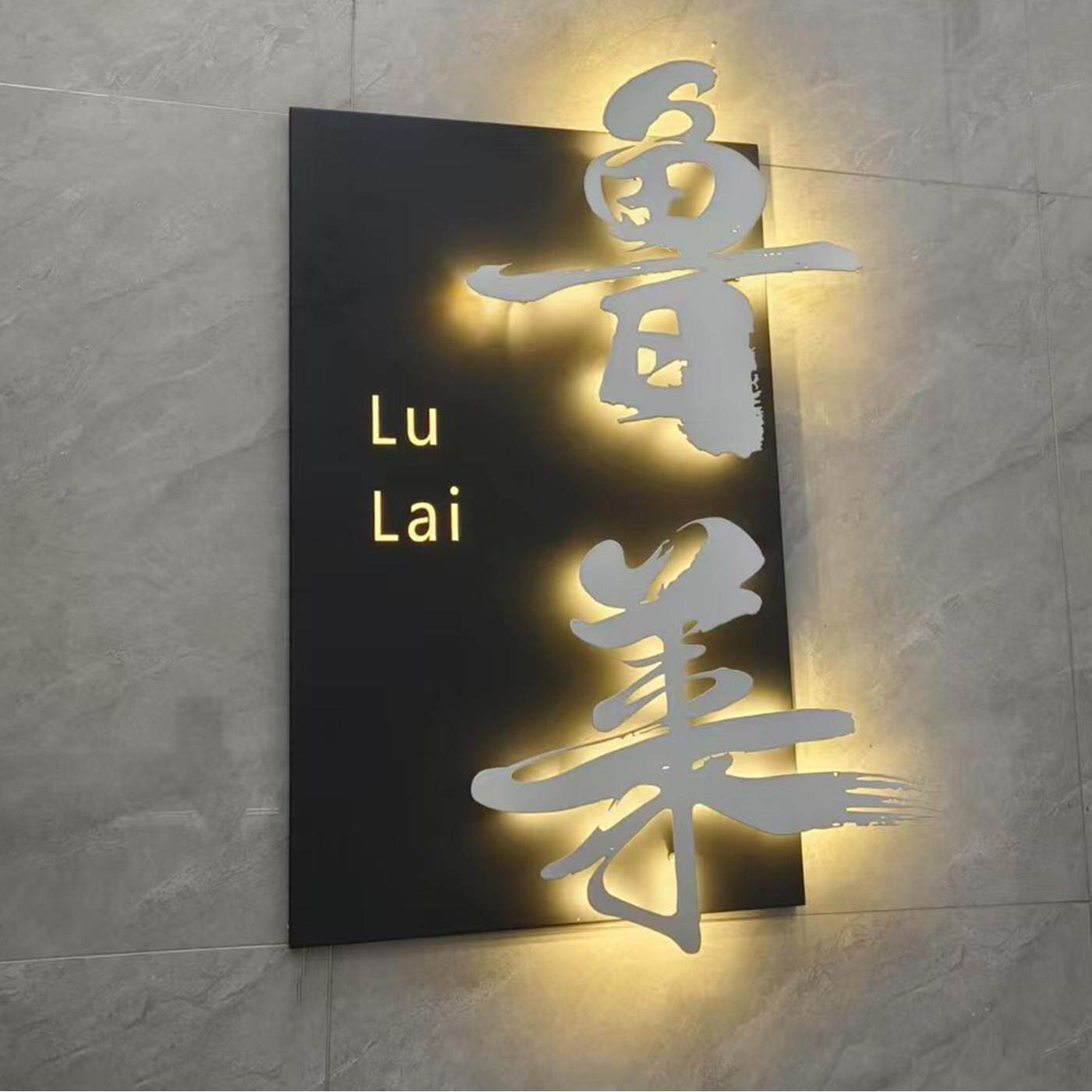 烤漆灯箱黑铁招牌设计生锈背发光字镂空雕刻铁板门头个性创意制作