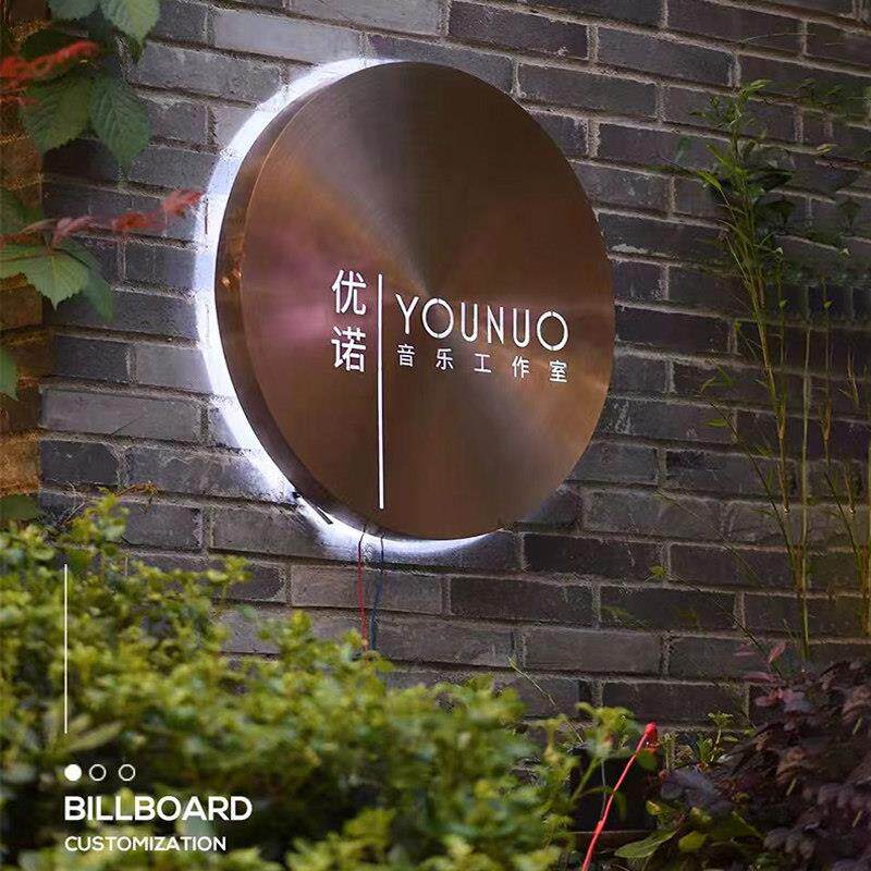 创意镂空灯箱广告牌制作不锈钢门头户外招牌设计圆形铁艺logo挂墙