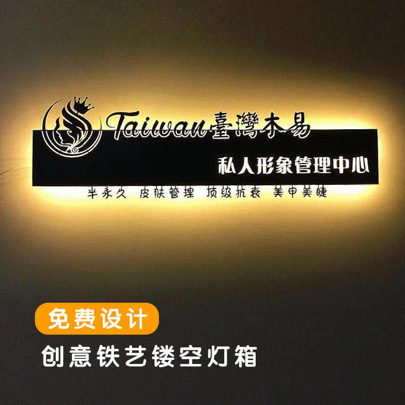 创意镂空灯箱广告牌铁艺户外发光字门头招牌设计挂墙灯箱门牌定制