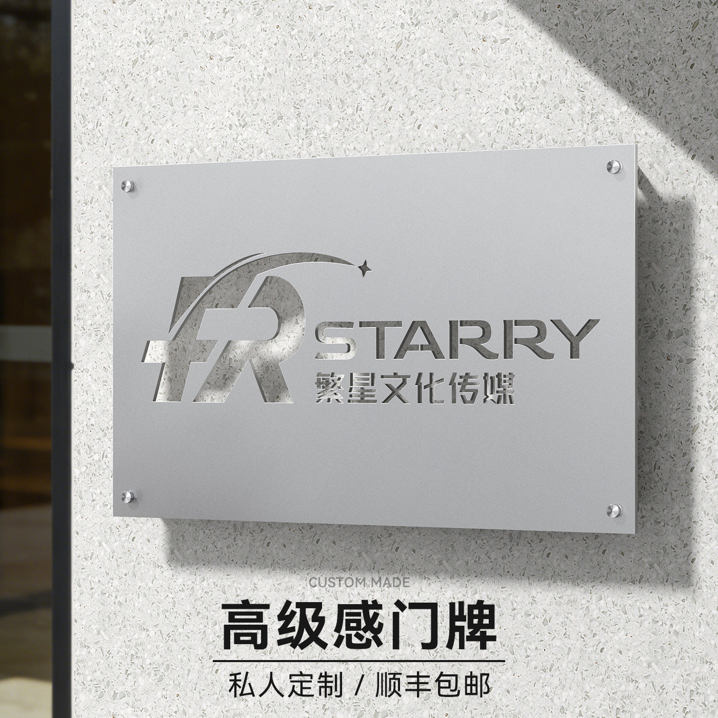 高档门牌定制金属银色网红户外招牌设计公司工作室不锈钢铁艺广告