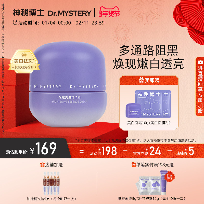 【天猫官播】白鹿丹美白祛斑霜377白藜芦醇保湿面霜淡斑美白去黄