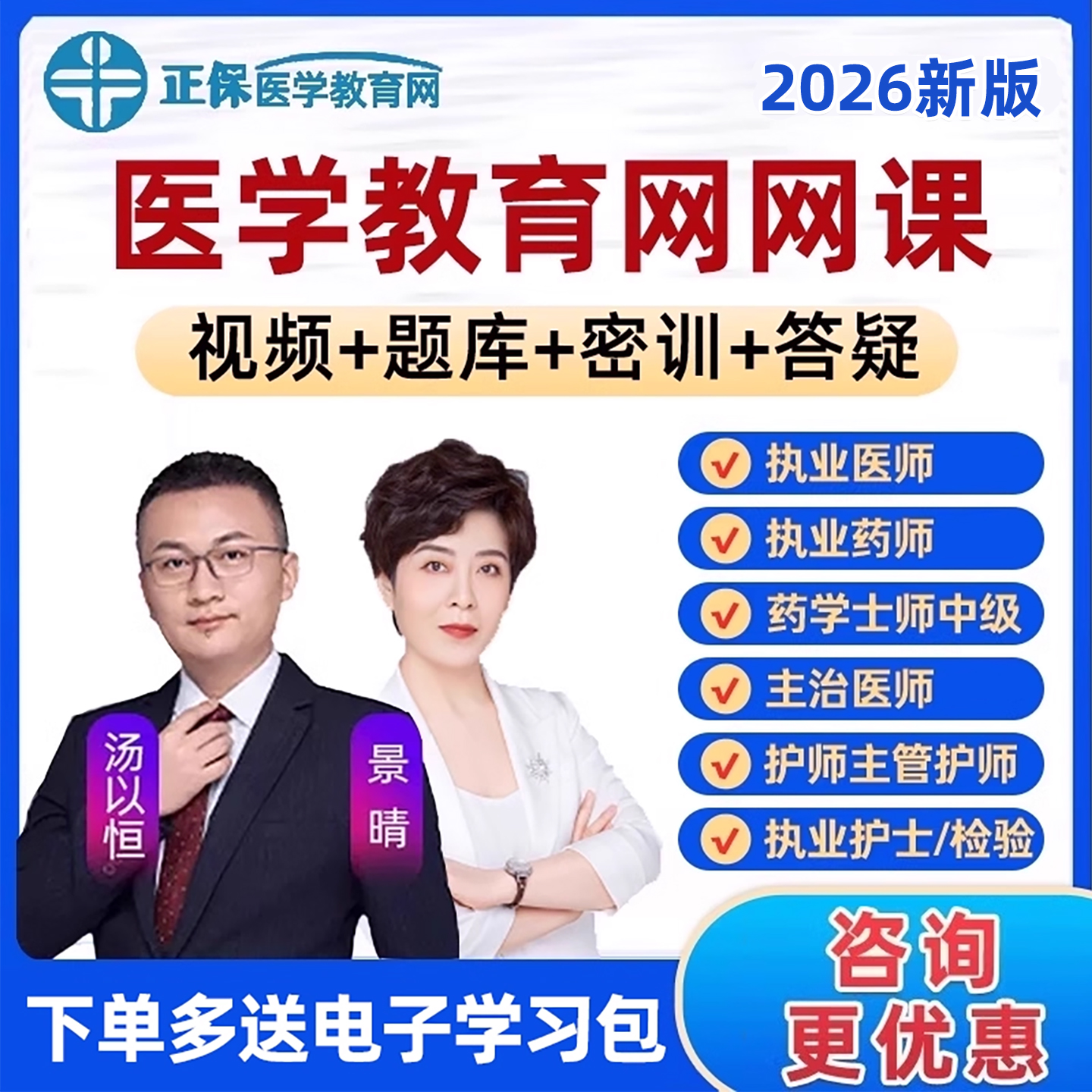 正保医学教育网2025执业西药中药药师2026主治医师主管护师护理学初级中级职称考试题库网课视频教材书内科口腔妇产科汤以恒景晴