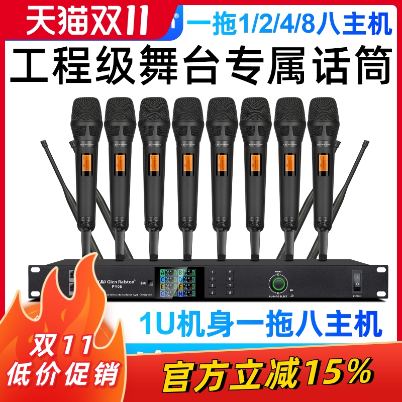 Glen ralston/格伦士顿家用唱歌无线话筒一拖二婚庆舞台专业防啸叫麦克风一拖四演出手持话筒K歌胸麦领夹头戴