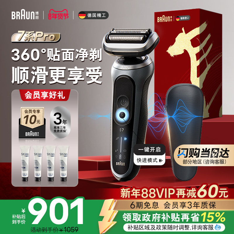 【政府补贴】博朗雷霆7系男士电动剃须刀往复式便携刮胡刀送礼物
