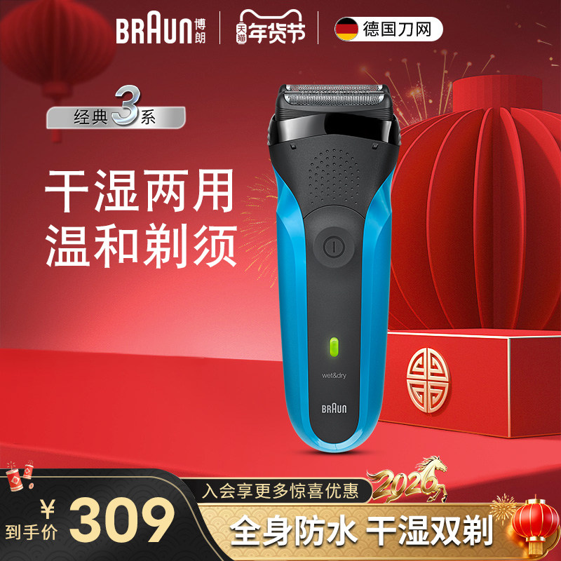 博朗剃须刀男士电动刮胡刀3系301s快充全身水洗便携往复式胡须刀