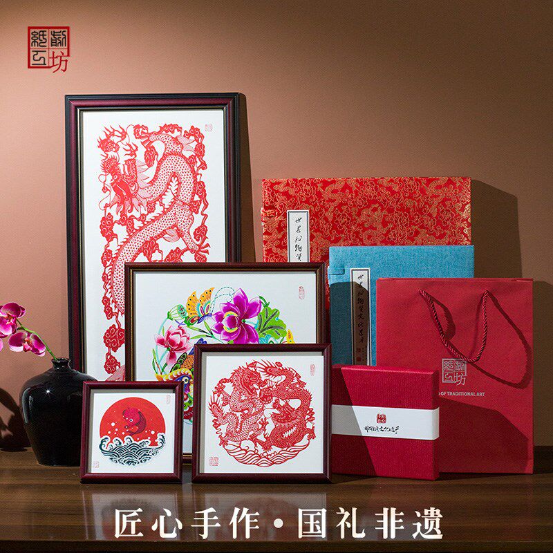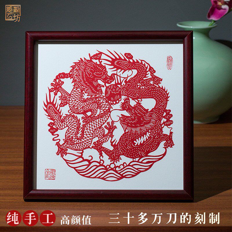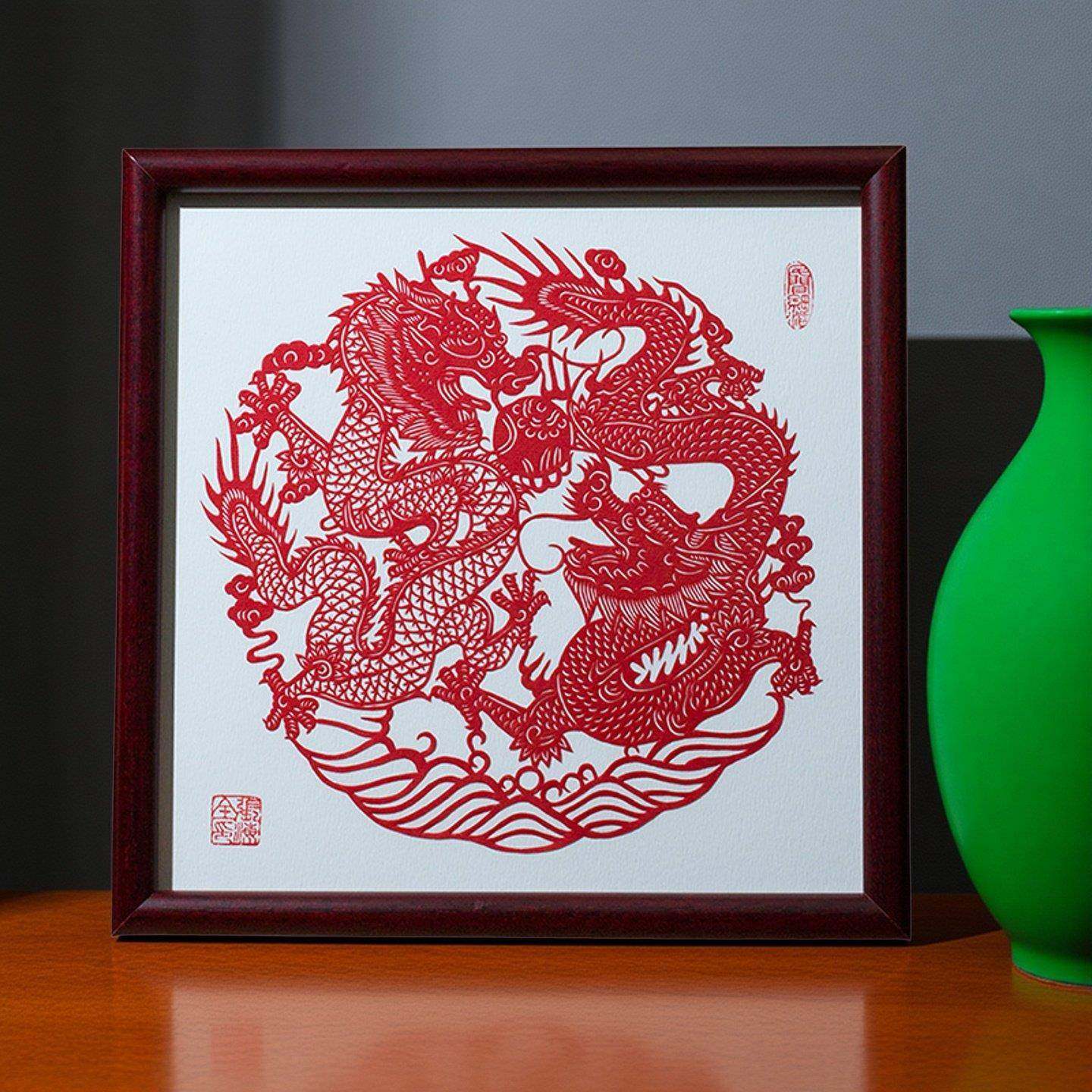 中国特色蛇年剪纸成品十二生肖纯手工剪纸装饰画中国风礼品送老外