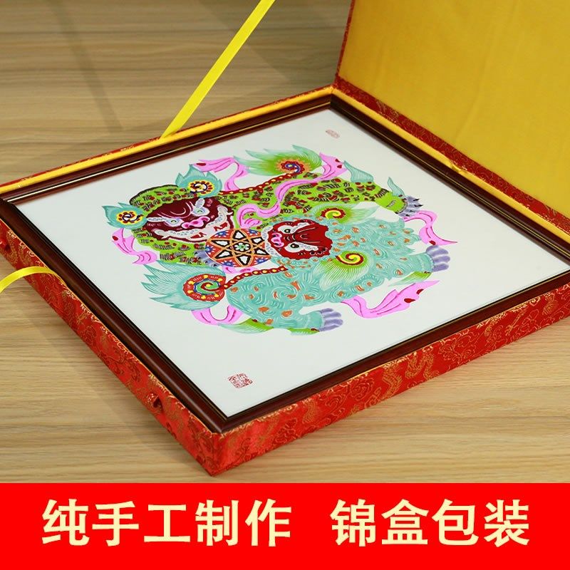 蔚县特色蛇年剪纸成品狮滚绣球纯手工剪纸装饰画中国风礼品送老外