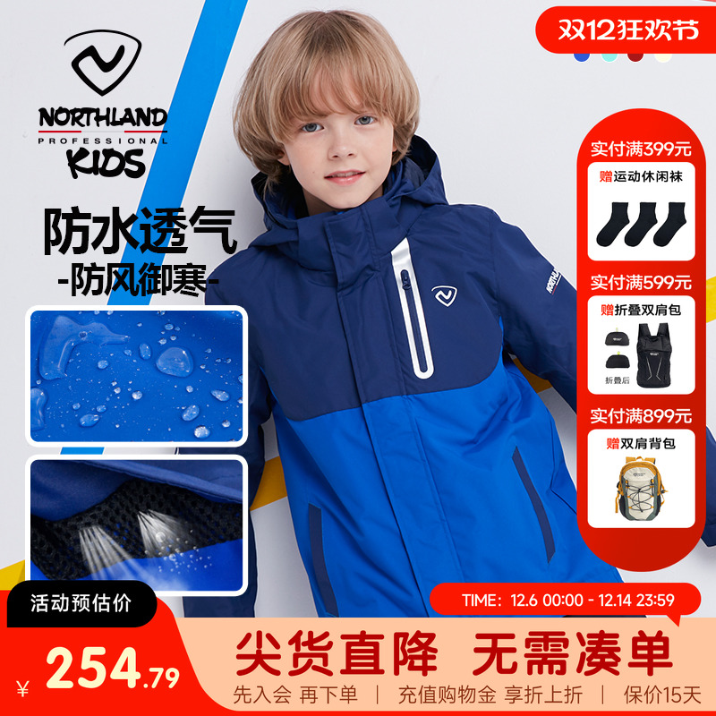诺诗兰儿童冲锋夹克外衣三合一可拆卸男童大童春秋外出女童厚外套