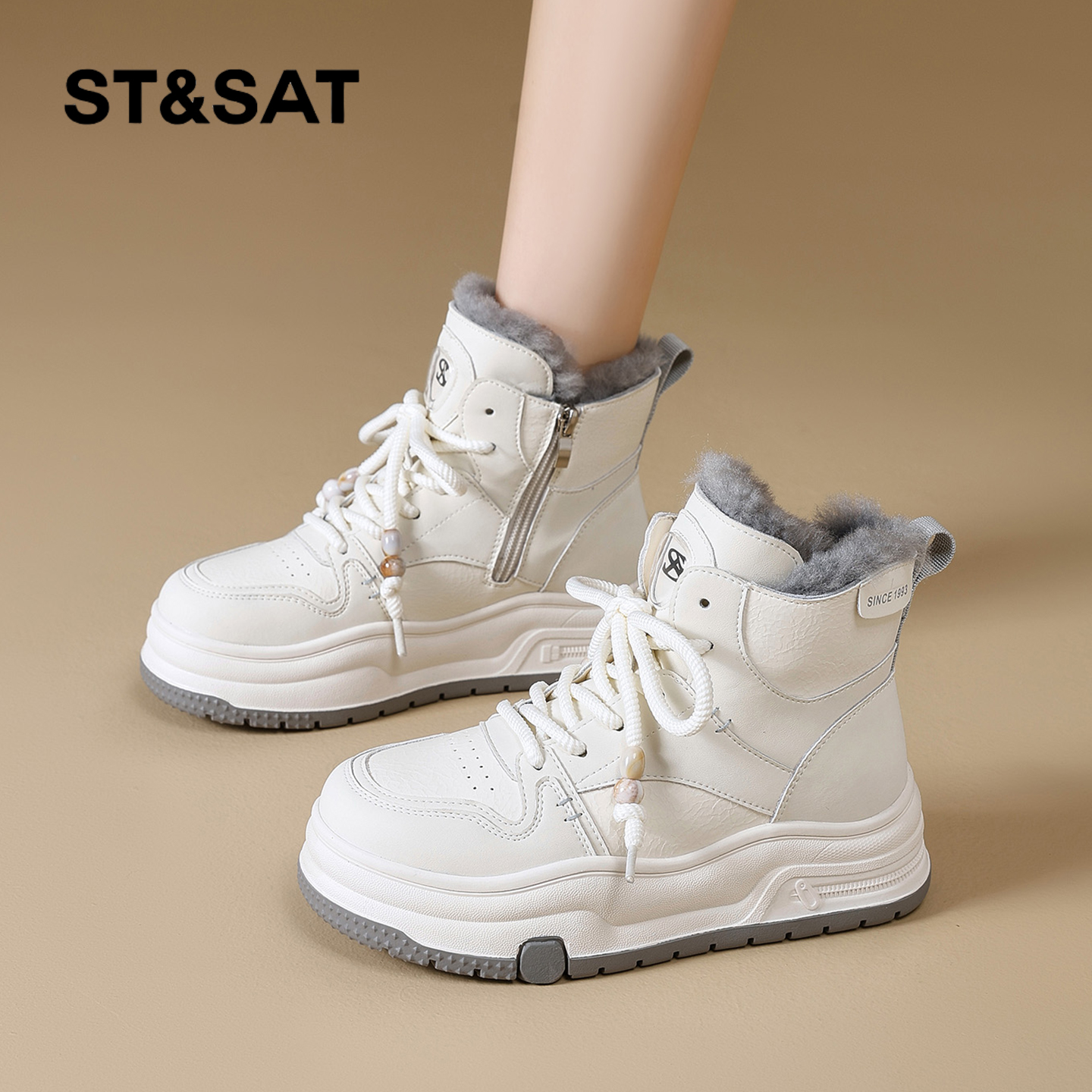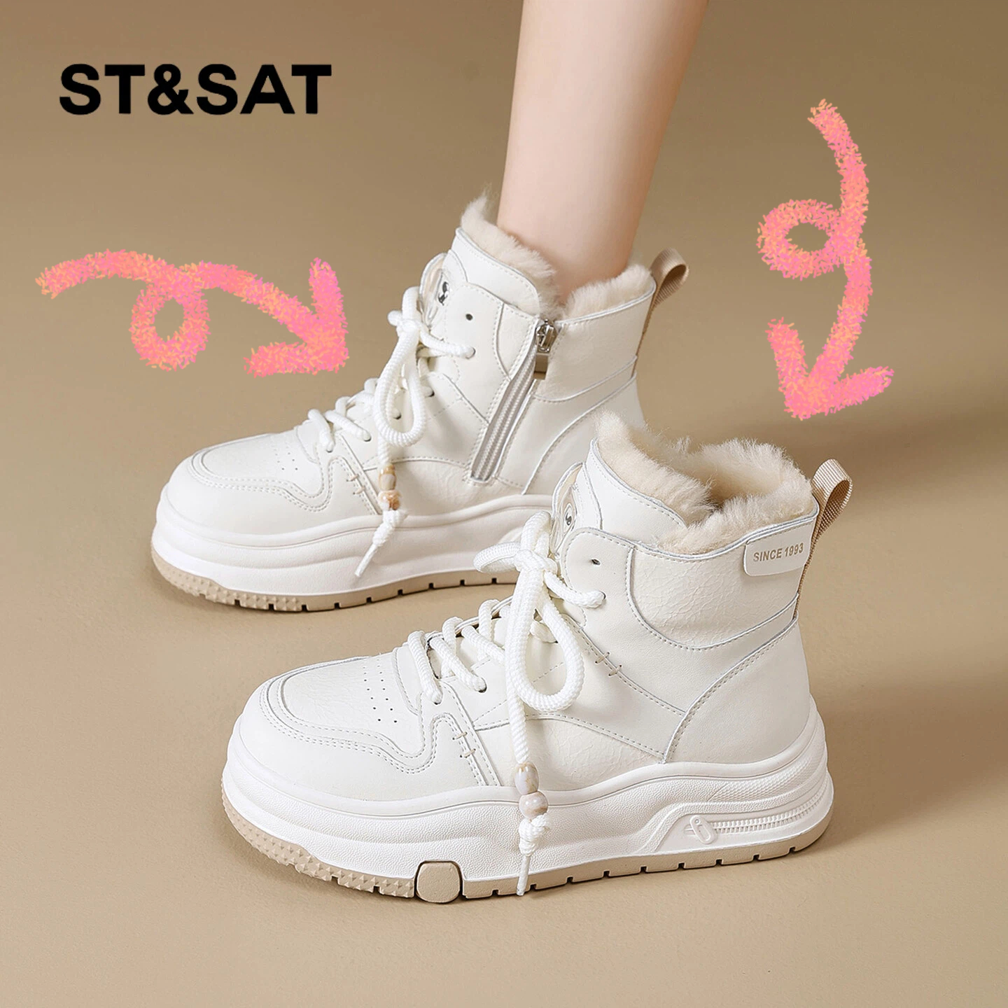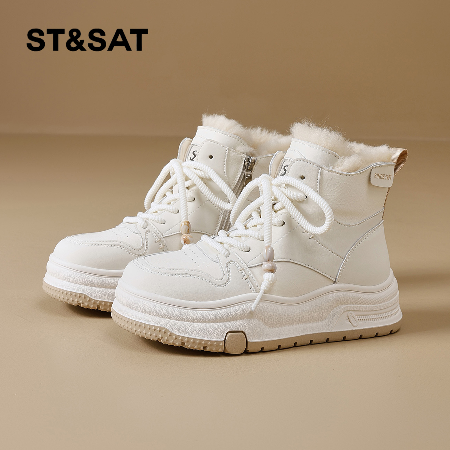 星期六高帮鞋女2025冬季新款女靴女款加绒加厚保暖厚底雪地小白鞋