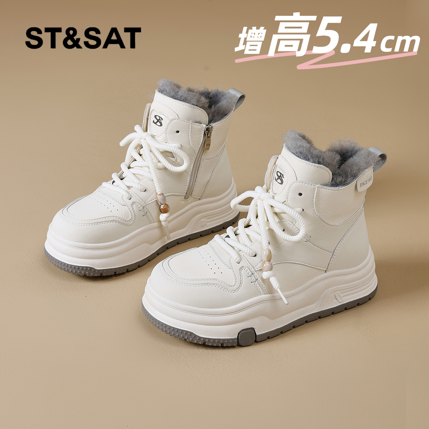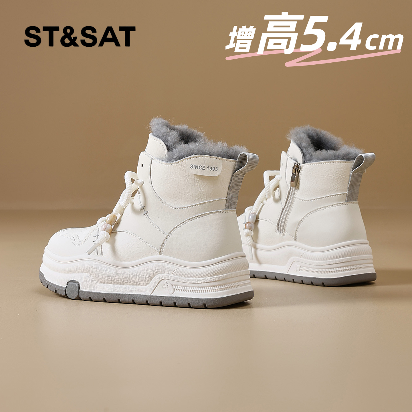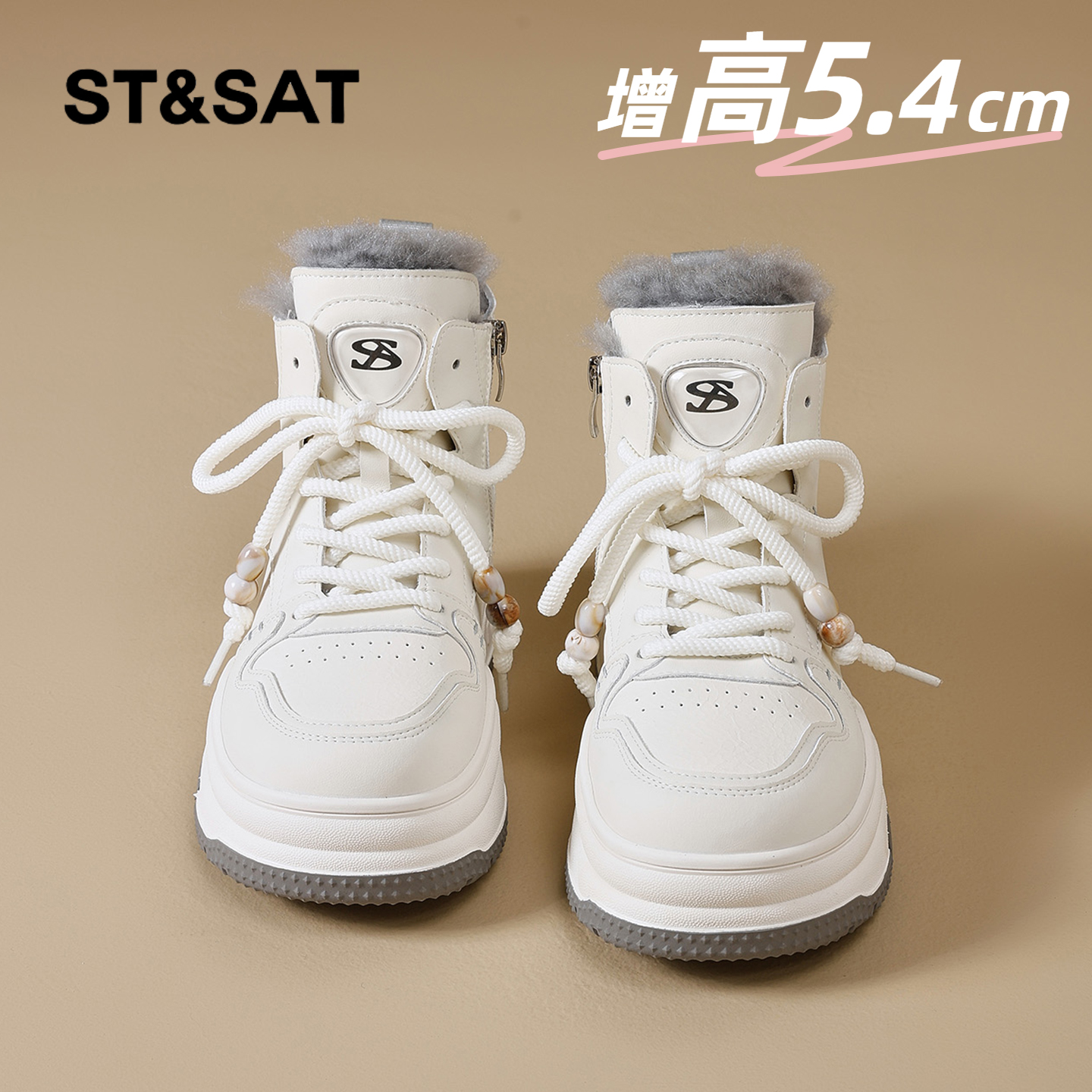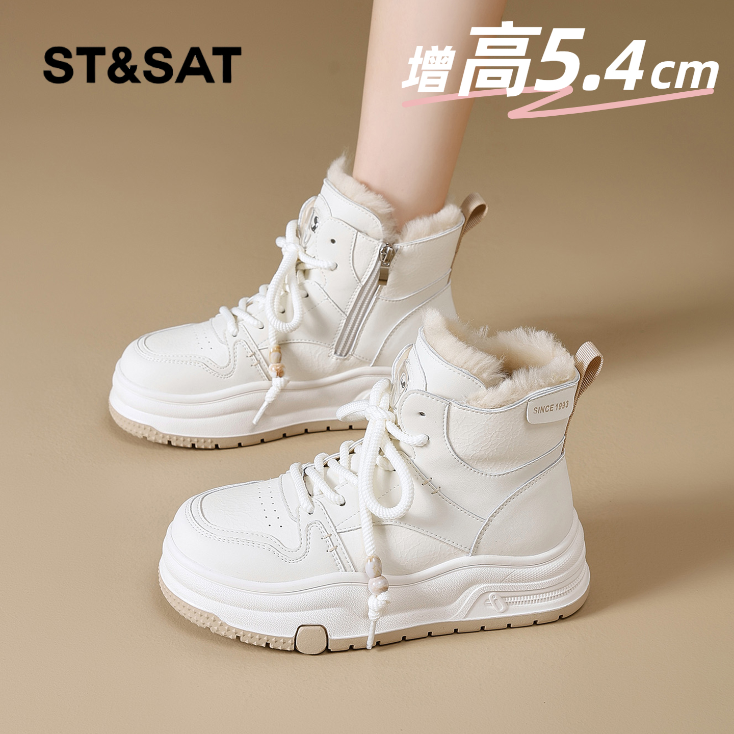 星期六加绒高帮鞋女2025冬季新款厚底内增高轻便保暖小白鞋雪地靴