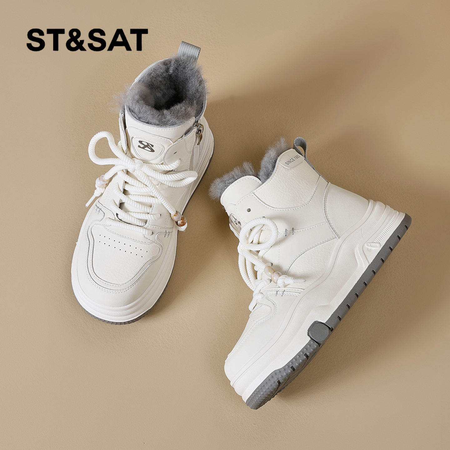 星期六高帮鞋女2025冬季新款女鞋女款加绒加厚保暖中帮小白雪地靴