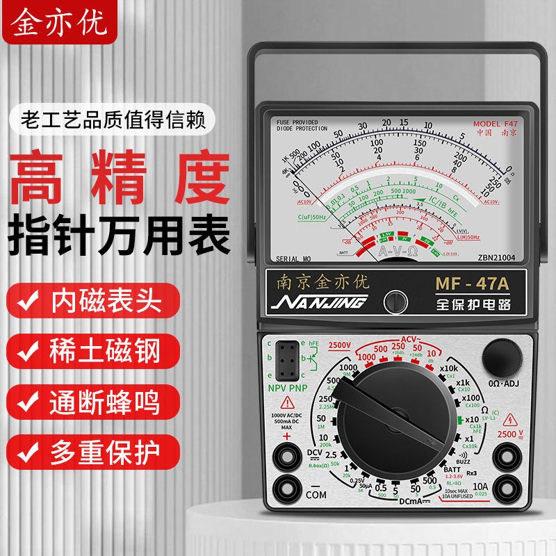 南京MF47指针式万用表高精度机械内磁防烧蜂鸣万能表电工专用老式