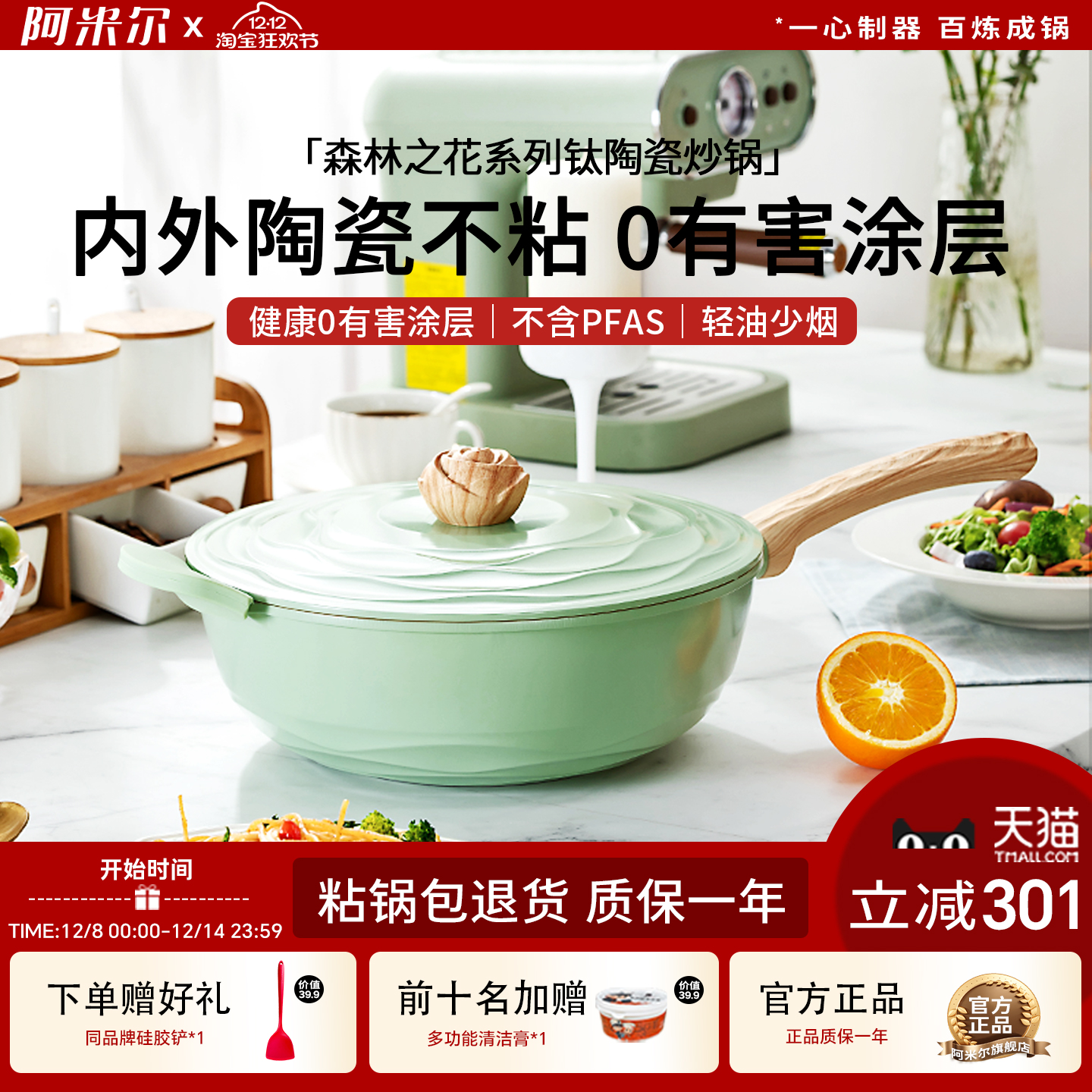 阿米尔陶瓷不粘炒锅森林之花少油烟无有害涂层珐琅不粘家用炒菜锅