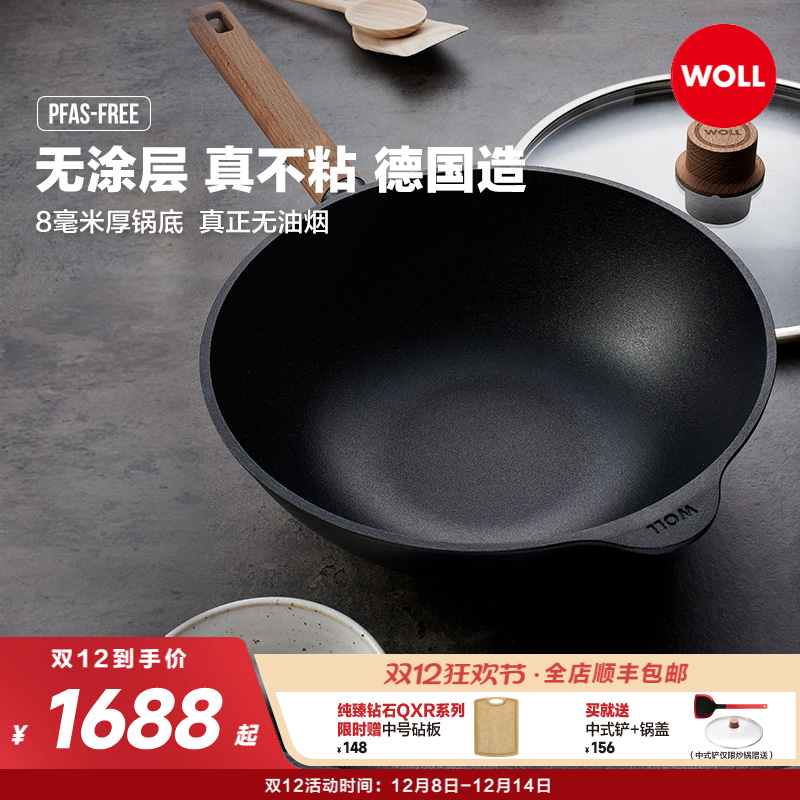 【新品】WOLL德国进口不粘锅无涂层无油烟炒菜家用电磁炉炒锅