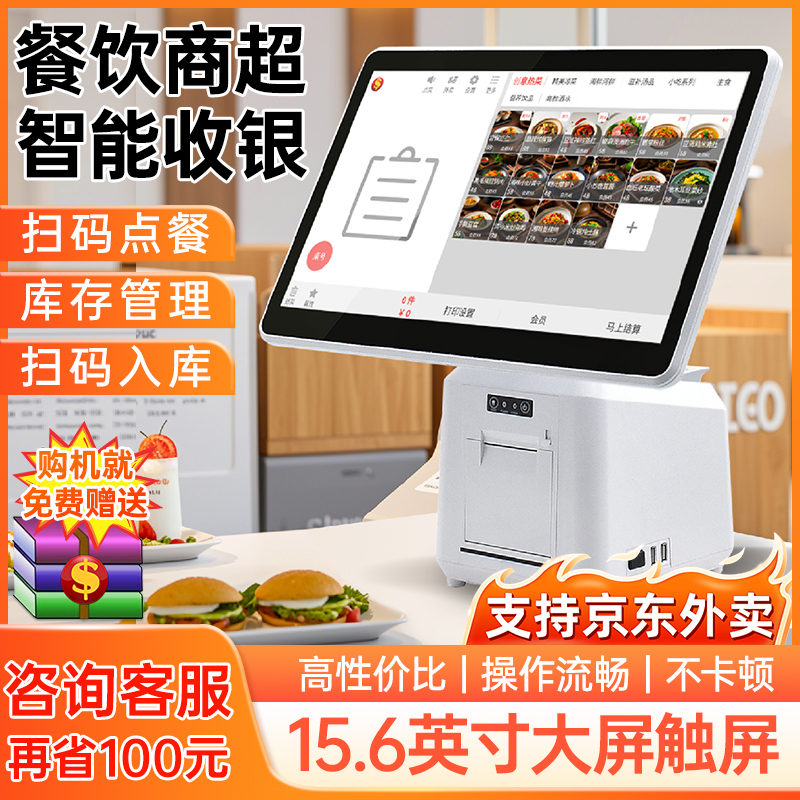 餐饮超市收银机零售便利店小型扫码收款机奶茶饭店面馆点餐机外卖点单机点菜机商用收银系统软件管理一体机