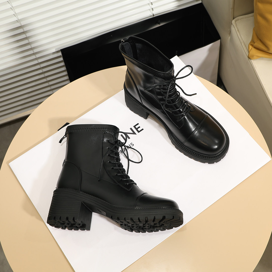 韩版短靴女高跟马丁靴女2025新款系带粗跟短靴女春秋单靴及踝靴