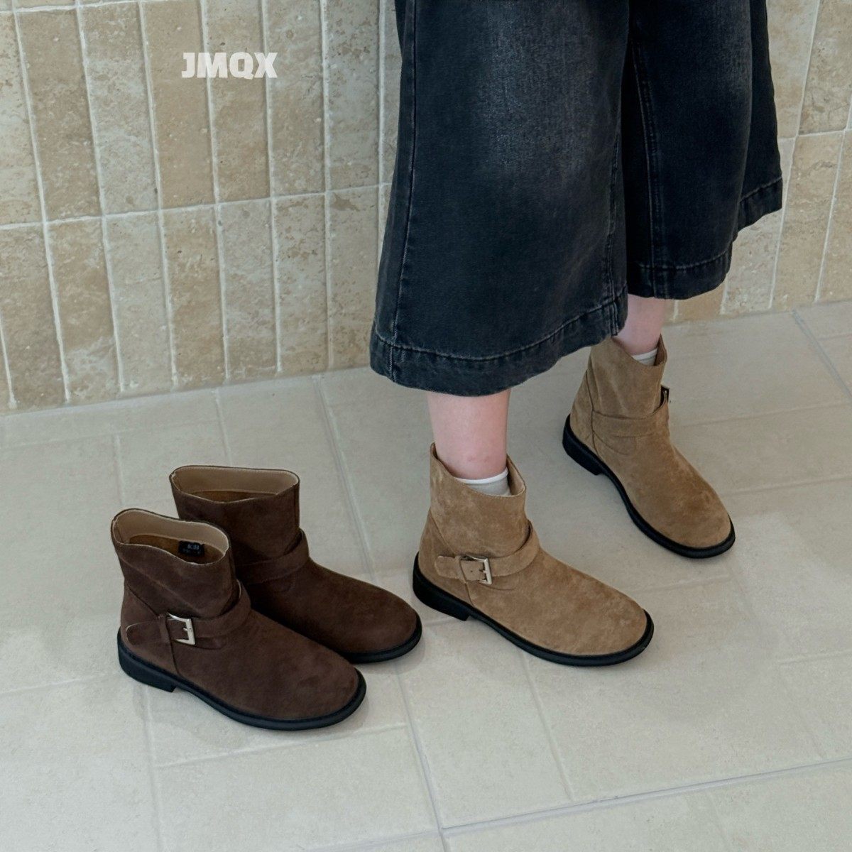 韩版复古绒面圆头粗跟小短靴女2025春秋冬季百搭裸靴废土风单靴