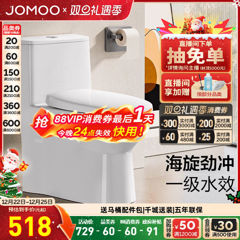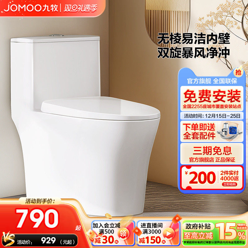 【百亿补贴】九牧卫浴九级暴风虹吸式节水马桶防臭抗菌陶瓷坐便器