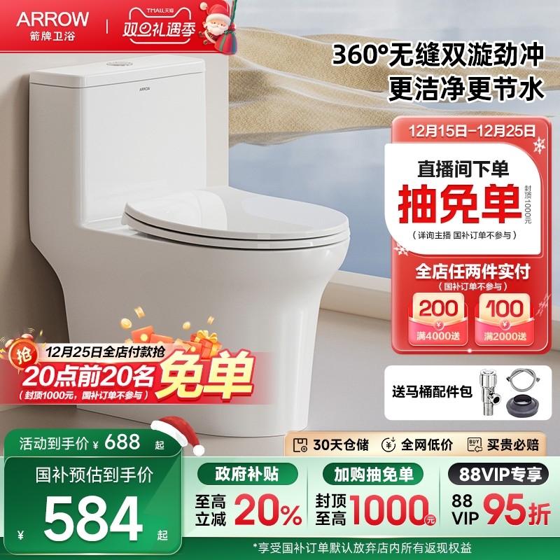 【详情页领9折券】箭牌官方旗舰小户型轻音巨冲防臭马桶政府补贴