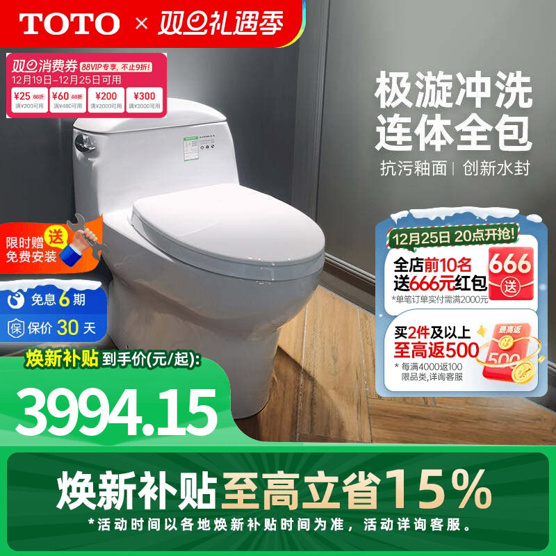 [焕新补贴] TOTO卫浴家用连体全包抽水马桶防臭座便器CW988(04-A)
